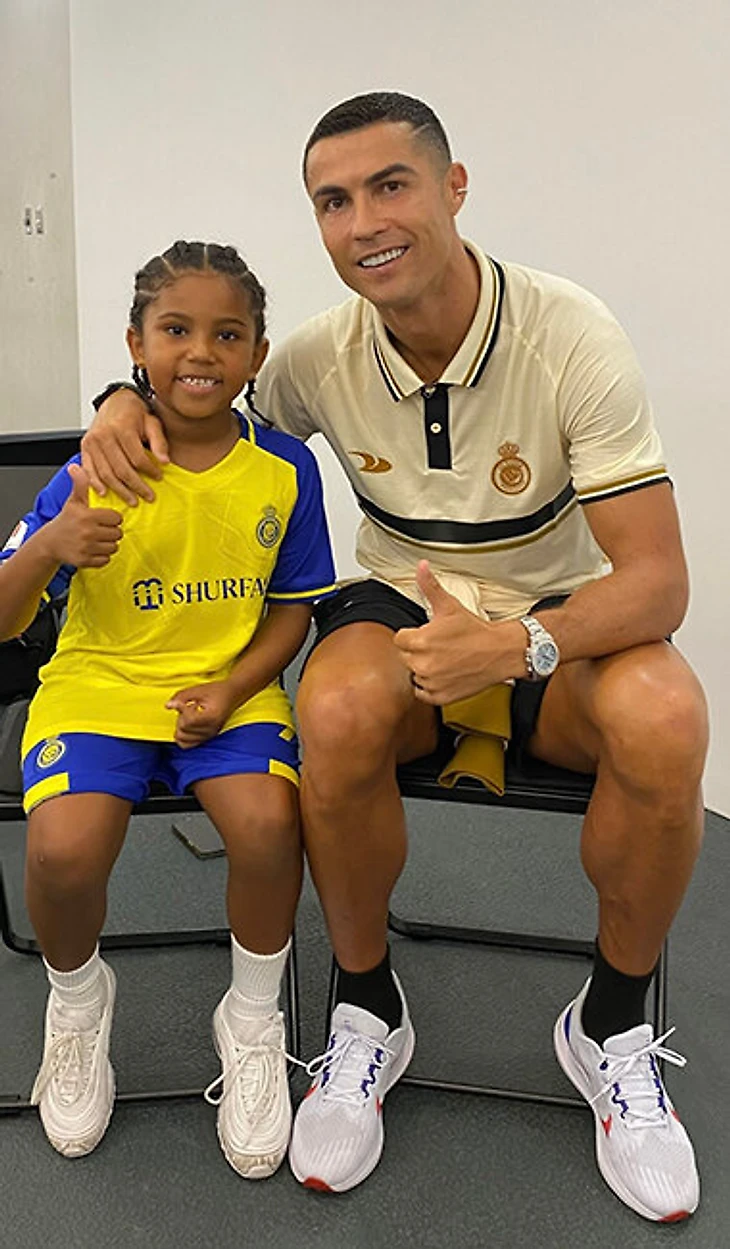 Сэйнт – большой футбольный фанат. Уже виделся со многими звездами: прошлым летом встречался с Криштиану Роналду, получил футболку «Аль-Насра».