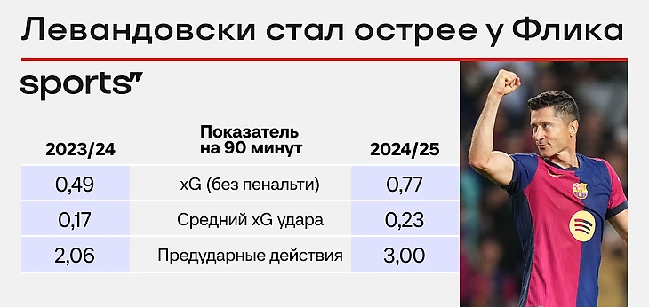 Важно проговорить: Хави тоже затачивал атаку на Левандовского. Подачи на него были важным инструментом против низких оборон. На определенном этапе поляка кормили эталонным образом. Флик еще лучше знает Левандовского и создает ему максимальный комфорт в деталях.