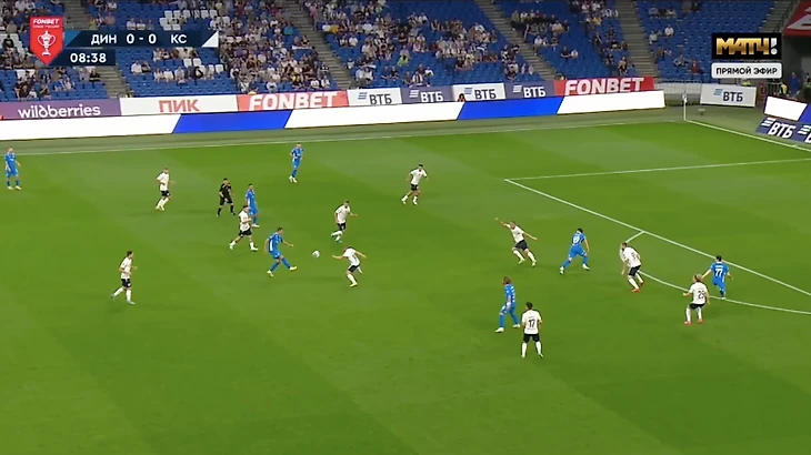 Юные динамовцы блеснули уже на 9-й минуте. Окишор элегантным черпачком закинул в штрафную из глубины поля.