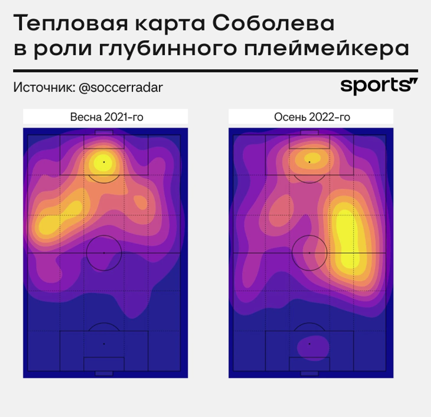Трансформация Соболева похожа: шикарно разыгрывал при Доменико Тедеско и в первые полгода Гильермо Абаскаля. Александру комфортно в оттяжке и без фиксированной позиции.