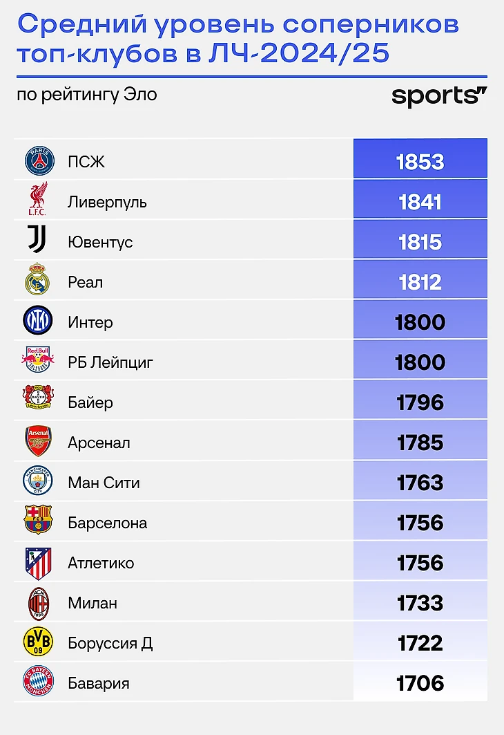 Мы усреднили рейтинг соперников каждого топ-клуба. И вот что получилось.