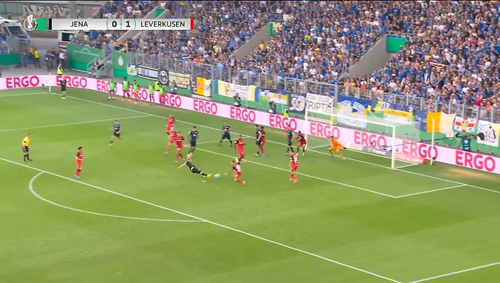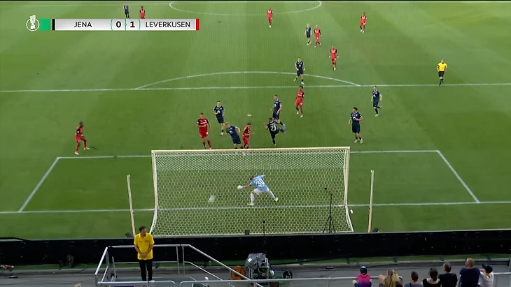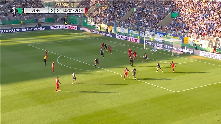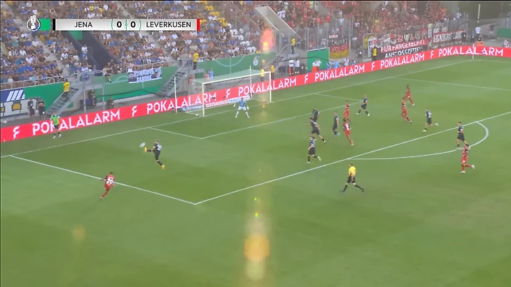 «Байер» подходил к матчу против «Карл Цейсса» в качестве фаворита. На деле «Леверкузен» полностью забрал мяч под свой контроль и оправдал ожидания. Однако команда Хаби Алонсо не достовляла «Йене» особых проблем в финальной трети.