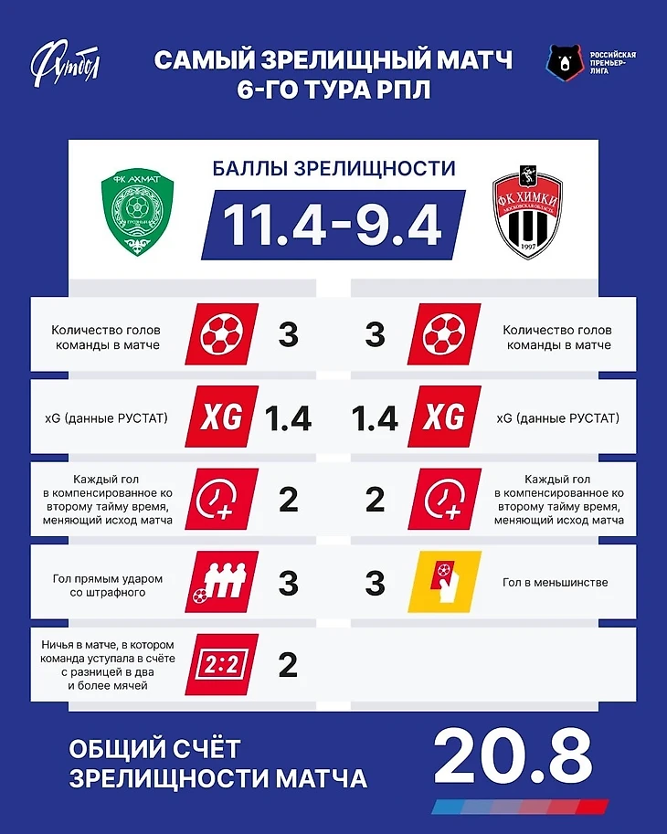— Игра «Ахмат» – «Химки» признана самым зрелищным матчем 6-го тура по версии журнала «Футбол».
