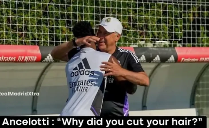 Во время пятничной тренировки «Реала» Карло Анчелотти спросил у бразильца про новую стрижку: