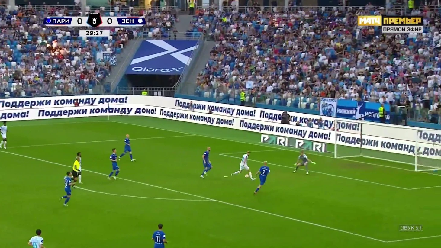 Лусиано открыл счет – и гол был важным. Ведь «Зенит» никак не мог пробить Никиту Медведева: вратарь «Пари НН» в первом тайме сделал рекордные для себя семь сэйвов – раньше столько голкипер не делал даже за целый матч в РПЛ.