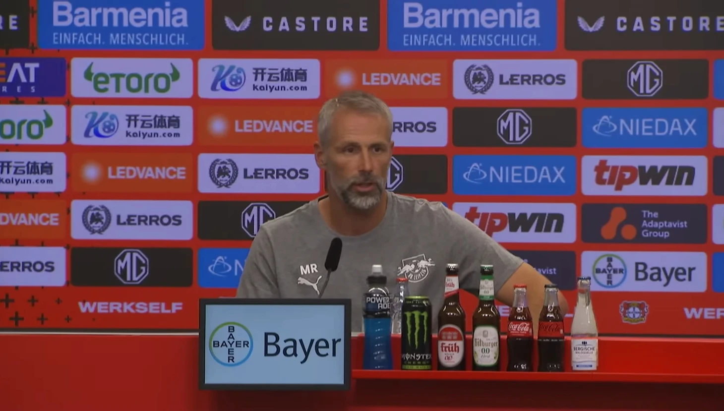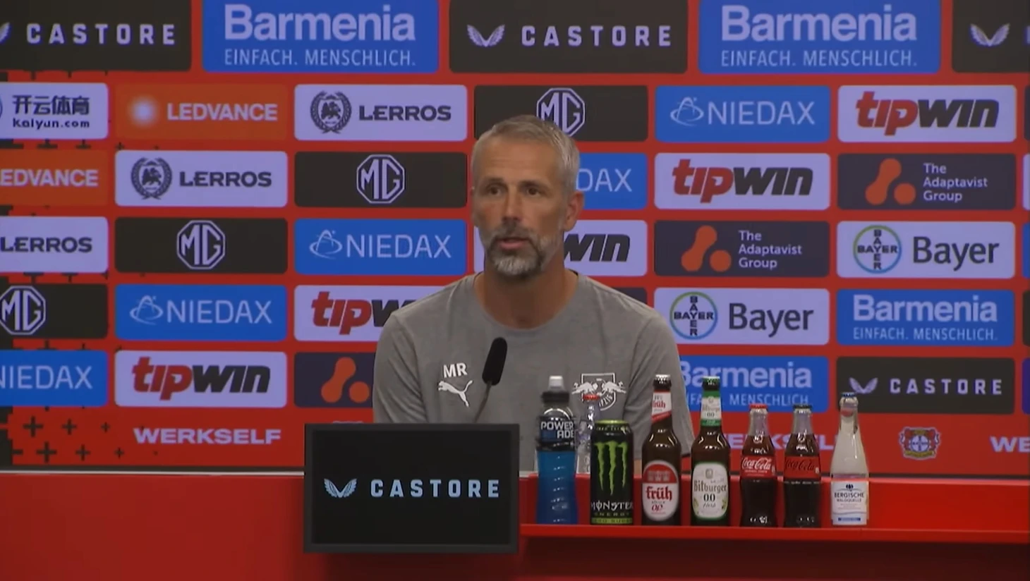 «Всем добрый вечер! Добро пожаловать на пресс-конференцию после матча между «Байером» из Леверкузена и «Лейпцигом». Итоговый счёт 2:3. Я приветствую обоих тренеров. Марко Розе, пожалуйста, поделитесь своими впечатлениями о матче».