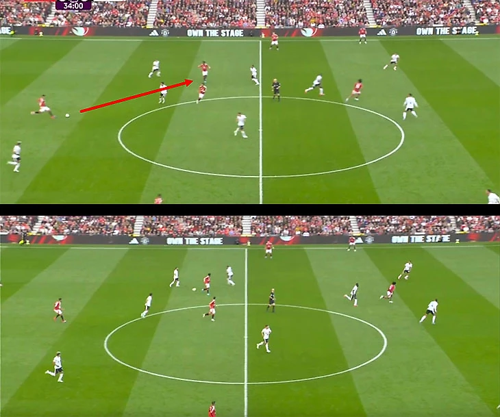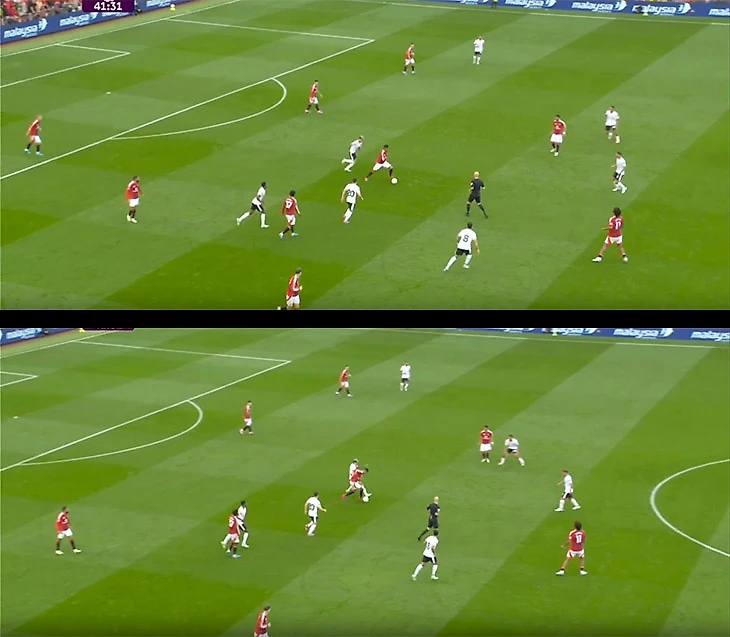 Но если серьезно - по лекалам Клоппа игроки Ливера весь матч ловили соперника в переходных фазах. При первом голе до обреза Каземиро накрывали две попытки манков выбежать в атаку, при втором голе бразильца образцово накрыли при приеме мяча - он оказался в капкане, точно также накрыли во втором тайме Майну. Играли две команды совершенно разного уровня - не по трансферной стоимости активов, а по уровню общекомандного взаимопонимания. При такой игре Угарте смотрелся бы точно также ужасно - он пасует еще хуже Каземиро. А перестроиться на длинные передачи, как например несколько раз продемонстрировала Барса против Вальядолида, Тен Хаг не решился.