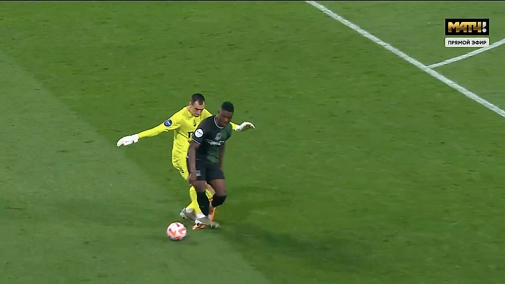 Главный арбитр матча Владислав Безбородов сначала засчитал гол, но ВАР усмотрел офсайд – совсем минимальный. Непростой эпизод разбирали почти пять минут. В итоге гол отменили, шестой ассист Батракова – тоже.