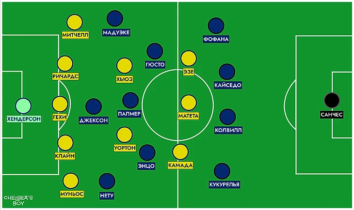 К тому же, «Челси» не проседал и в центре: против Хьюза и Уортона играла тройка «Энцо-Палмер-Гюсто».