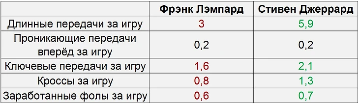 Игра «Челси» и «Ливерпуля» долго была построена вокруг сегодняшних героев. Длинные передачи – это именно то, что Фрэнк и Стивен исполняли чаще всего. Лэмпс особенно эффектно любые пасы. Хоть рабоной, хоть шведой, просто загляденье! Но всё-таки в атаке важнее эффективность. Аристократ с 13-летним стажем мог посоперничать с уроженцем графства Мерсисайд только по заработанным фолам и передачам вразрез.