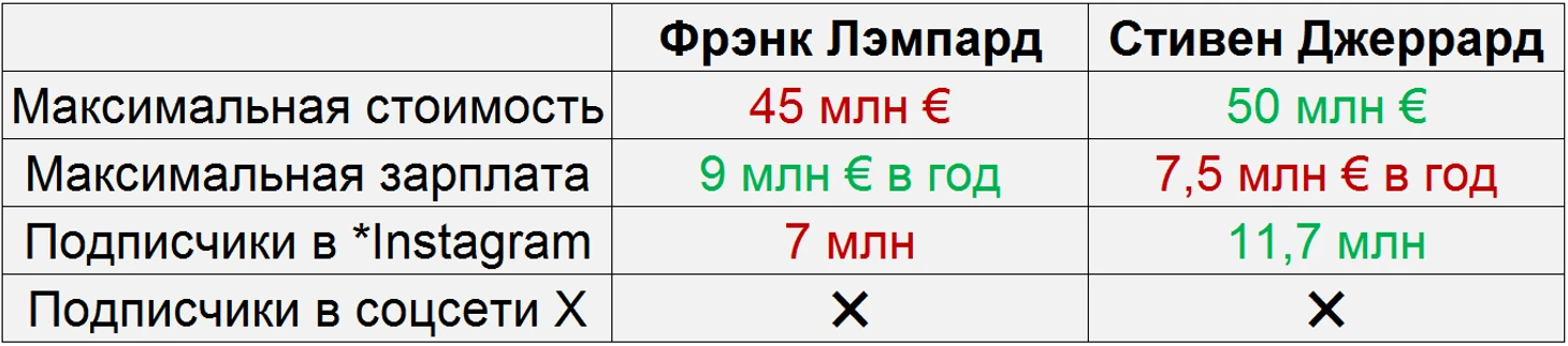 Оба игрока имели пиковую стоимость в июне 2009 года. Лэмпард стоил на 5 лямов дешевле за счёт возраста. Руководство синих максимально платило своему главному игроку 9 млн € в год, а годовая личка Джеррарда равнялась 7,5 млн €. А вот за личной жизнью многолетнего лидера красных следит гораздо больше человек.