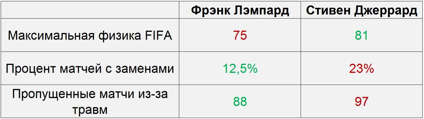 Разработчики FIFA считают, что на пике физически был сильнее Стивен. А вот в реальном мире Фрэнк и пропустил меньше из-за повреждений, и во время матчей тренеры ему давали отдохнуть чуть ли не в два раза реже.