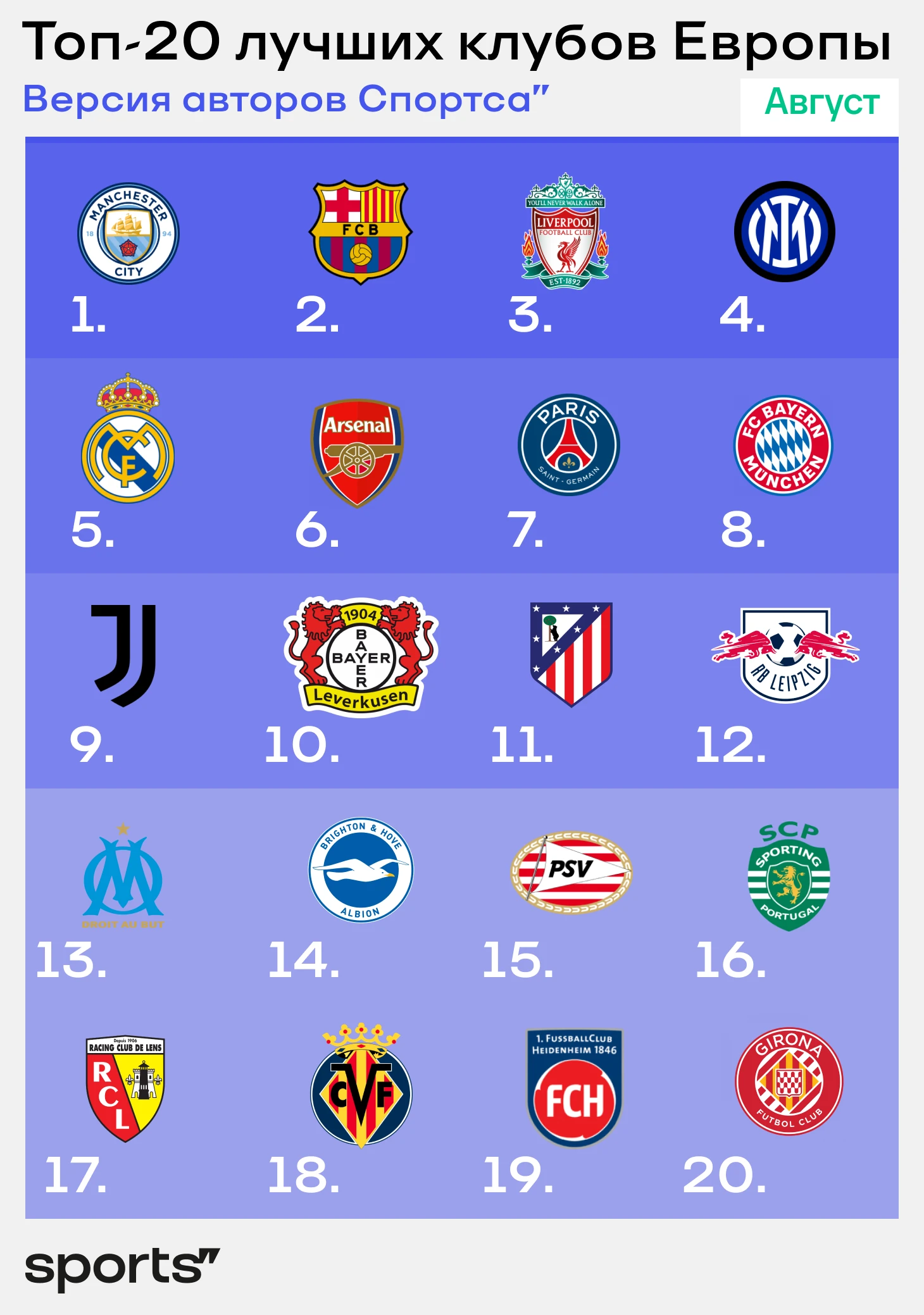 Напоминаем, что рейтинг собирают авторы Спортса’’, которые смотрят очень много футбола. В начале месяца мы проводим внутренний опрос и выбираем двадцатку. Несмотря на то, что расставляем команды по местам, главная цель рейтинга – навигация. Чтобы вам было проще следить за топ-клубами и не упускать интересные проекты (вроде прошлогодней «Жироны»).