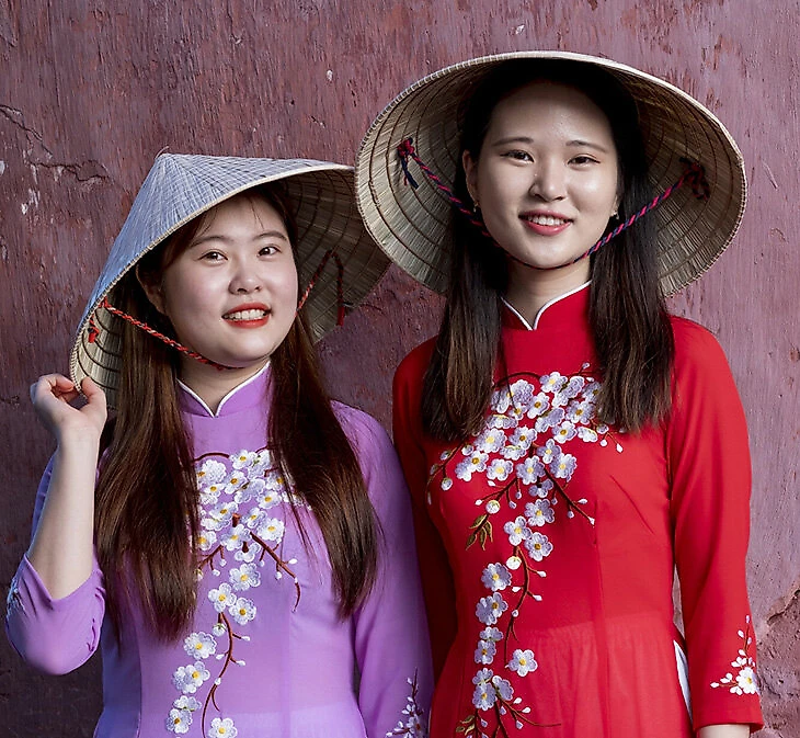 Кажется, нет более стереотипного предмета гардероба вьетнамца, чем конусообразная шляпа из высушенных пальмовых листьев на бамбуковом основании. Нон ла носят мужчины и женщины, раньше она ассоциировалась с крестьянами и тяжелым трудом, но сегодня полно более изысканных вариантов с узорами или надписями (например, со стихами). Шляпы делают вручную, есть целые деревни, жители которых специализируются исключительно на выпуске головных уборов.