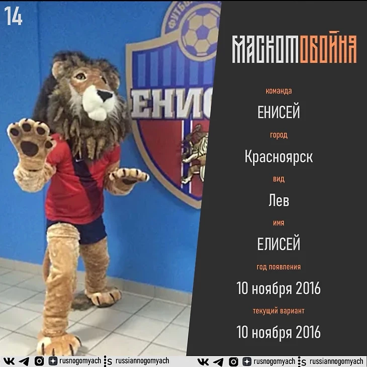 Этот лев сошёл с герба города Красноярск и перекочевал на эмблему клуба, а потом материализовался в маскота. А имя его просто созвучие с именем клуба. В общем, все символично