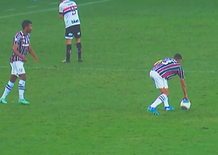 02.09, матч против Сан Паулу, который борется за прямую путевку в Кубок Либертадорес. Победа 2:0 – впервые в чемпионате Флуминенсе забил дважды в двух матчах подряд, впервые одержал две победы подряд с двумя забитыми мячами в каждом из матчей. Что касается статистики Тиаго Силвы, то: ✅58 касаний; ✅42/45 точных передачи; ✅1 предг0щолевой пас; ✅6 выносов мяча; ✅2 заблокированных удара; ✅2 перехвата; ✅1 отбор мяча. Однако, по поводу предголевого паса не всё так однозначно. На фото ниже вы видите 9-го номера Сан Пауло, держащегося за лицо, и Тиаго Силву, устанавливающего мяч рукой. Дело в том, что, несмотря на явную отмашку одноклубника Силвы, судья показал фол в пользу Флуминенсе, при этом игру не остановил и не свистнул. После чего капитан Флуминенсе отдал пас Марсело, а тот - забившему партнеру. Таким образом получается, что гол был забит с нарушением правил, поскольку Тиаго сыграл рукой, ведь сигнала об остановке игры не было. Однако, даже посмотрев ВАР, судья не изменил своего решения и засчитал гол в ворота Сан Пауло. Весьма странное решение главного арбитра.