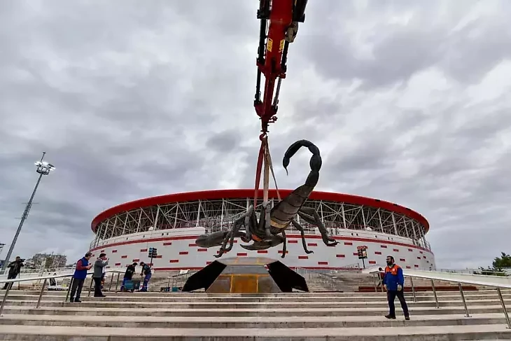 Если вы решите посетить матч «Антальяспора», у основания лестницы на территории нового стадиона клуба, открытого в 2015 г., вас встретит огромная натуралистичная скульптура скорпиона. Она была установлена относительно недавно, даже позже сдачи объекта в эксплуатацию. Перед матчем против «Касымпаши» в 2019 г. устрашающее произведение искусства высотой 4 метра и шириной 7 метров, над которым 4 месяца вместе с командой трудился Чагдаш Полат Сарыкая, было представлено местным болельщикам.