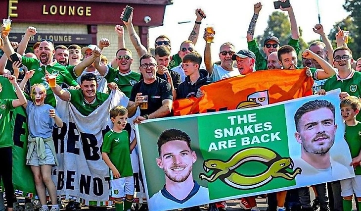 Еще до матча ирландцы ясно выразили свое отношение к игрокам: «Змеи вернулись».
