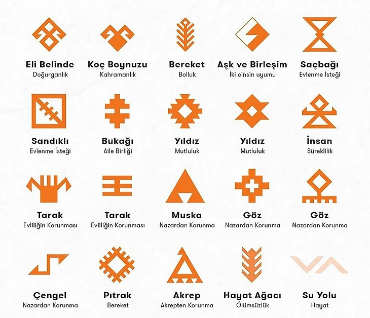 Перед вами – обозначения, использовавшиеся огузами. Это средневековый тюркский народ, проживавший в степях Средней Азии и современной Монголии в конце первого – начале второго тысячелетий. Всего насчитывалось 24 племени огузов, и у каждого была своя эмблема. Именно их в таком количестве мы и видим на футболке «Йени Мерси Идманюрду».