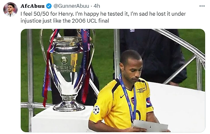 💭 «Смешанные чувства относительно Анри. Я рад, что он попытался, но мне грустно, что он несправедливо проиграл, как в финале ЛЧ в 2006 году».