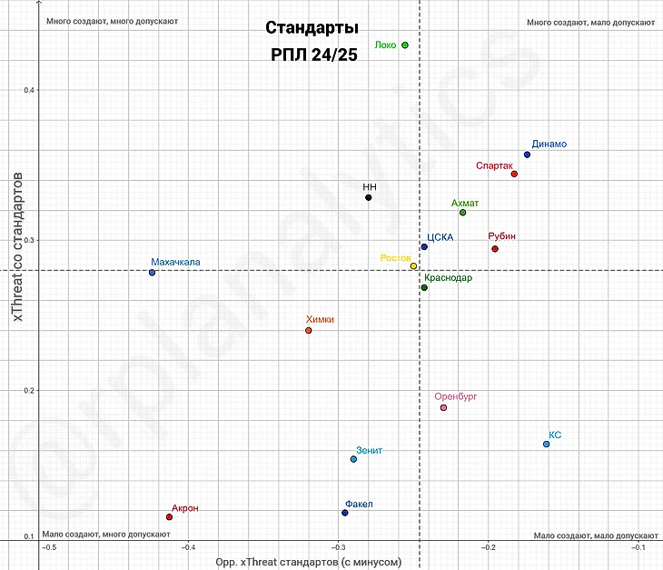 К слову, тут «Акрон» с отрывом слабее остальных. Сразу вспоминается победный гол Даку после ошибки Волкова на выходе. Тедееву стоит поработать над стандартами – этот аспект точно сделал бы команду менее уязвимой.