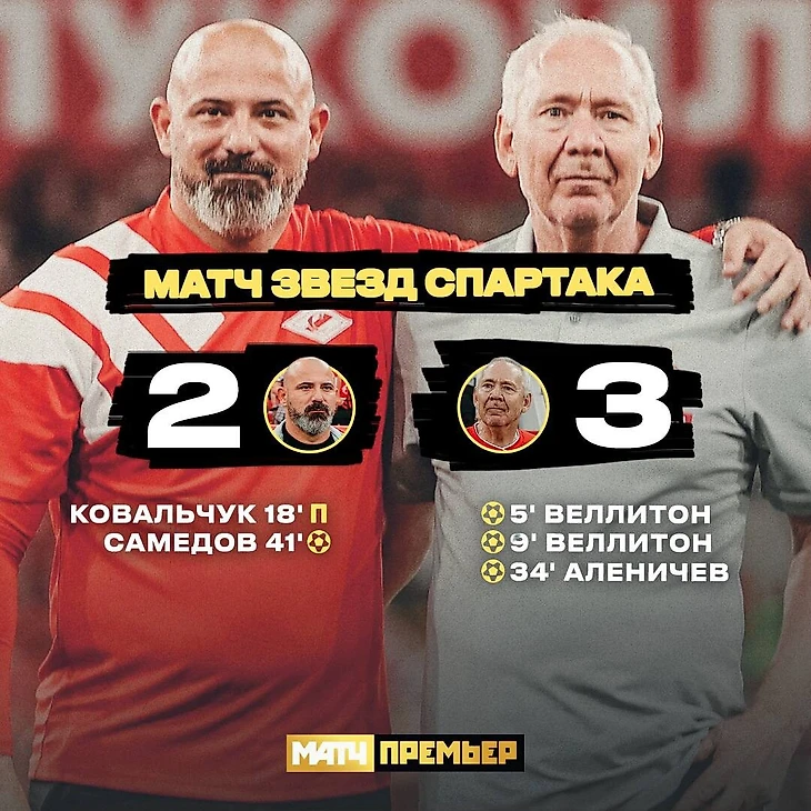 Команда бывшего главного тренера московского футбольного клуба «Спартак» Олега Романцева обыграла со счетом 3:2 команду нынешнего тренера красно-белых Деяна Станковича в матче звезд, посвященном 10-летию домашнего стадиона клуба. Встреча прошла на «Лукойл-Арене» в Москве в присутствии 30 113 зрителей. В составе победителей забитыми мячами отметились лучший бомбардир чемпионатов России 2009 и 2010 годов бразилец Веллитон (5-я и 9-я минуты), победитель Кубка УЕФА (2003) и Лиги чемпионов (2004), четырехкратный чемпион России в составе «Спартака» Дмитрий Аленичев (33). В составе проигравших отличились олимпийский чемпион по хоккею (2018) и двукратный чемпион мира (2008, 2009) Илья Ковальчук (16, с пенальти) и чемпион России в составе «Спартака» (2016/17) Александр Самедов (41).