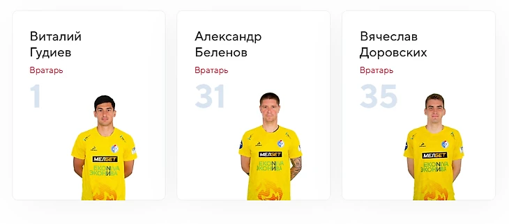 Вратари: Александр Беленов, Виталий Гудиев, Вячеслав Доровских.