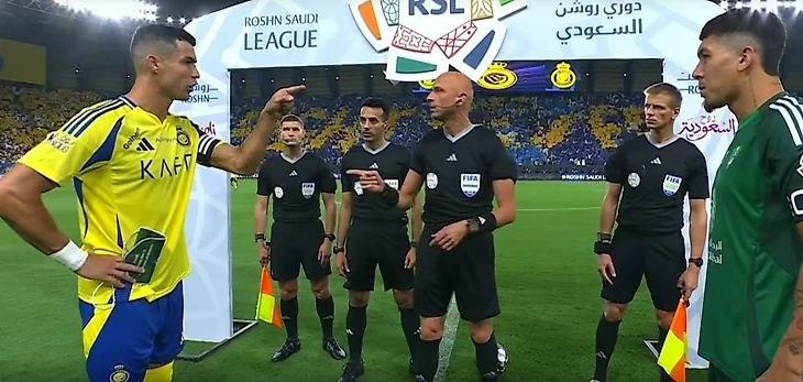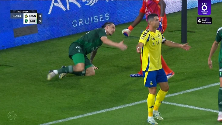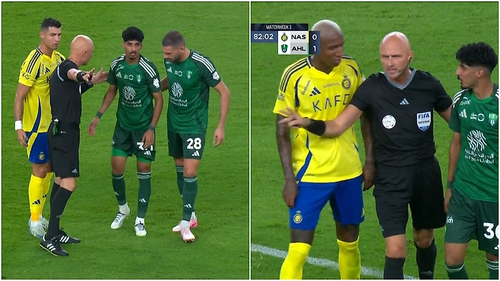 Второй тайм начался с фола на Роналду, возмущения португальца и указаний Карасева игрокам «Аль-Ахли».
