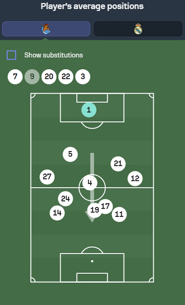 И начался матч, пусть и не так сместавкарьерно, как второй тайм, но тоже достаточно весло. Стартовый план Альгуасиля, как мне кажется, заключался в попытке сразу же, на кураже, смести гостей, пока те еще особо ничего и не поняли, но вот только он не учел, что подобное со «сливочными» прокатывает крайне редко. подопечные Анчелотти моментально все поняли, что происходит, и отошли в средне-низкий блок, дабы пережить этот стартовый натиск с минимальными рисками, что, в общем-то, у гостей и получилось. Однако, я вполне допускаю, что это и не было 100% планом А от главного тренера «Сосьедада», ведь сегодня (и не только) огромную роль сыграли трибуны, которые, очевидно, очень влияют на такую молодую баскскую команду, вторую по возрасту состава после «Барселоны». Так или иначе, столь резвый старт хозяев кроме некоторого чувства «вау!», которое во многом уже притупилось, ведь сейчас разве что совсем ничтожные коллективы не могут навязать борьбу «Мадриду» хотя бы на коротком отрезке матча, не привел. Потом же , после минут эдак 15 в осаде, «сливочные» таки оправились от нее и начали уже и свою игру пытаться навязать сопернику. И не сказать, что этого совсем не получалось сделать, ведь несмотря на очевидную стерильность при владении королевского клуба в первой половине, за счет индивидуалий в виде Мбаппе, Браима (до травмы) и Родриго (после травмы) некоторую опасность и проходы в штрафную, очевидно, не контролируемые обороной «Сосьедада», все-таки удавалось создавать. И да, вы правильно поняли, Винисиуса в этом списке нет, по крайней мере сейчас, ведь в первой половине он был ужасен, ведь ни одной успешной попытки дриблинга или чего-то подобного Вини в первом тайме, не показал, зато показал свой характер в очередной раз, поступив очень некрасиво с Арамбуру, хотя и последний тоже был не прочь показать характер. Но после этого перехода инициативы, конечно же, по-другому начали действовать и подопечные Альгуасиля, которые сосредоточились больше на быстрых и разящих контратаках, зачастую даже не задействуя фланги, за которые в атакующей фазе отвечали лишь Беккер и Кубо, хотя и они очень часто смещались в центр и действовали больше в полуфланге, и эта тенденция также получила свое продолжение во второй половине.