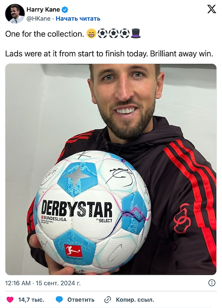 Под конец первого тайма Кейн точно приложился из-за пределов штрафной. А в концовке матча сам заработал и реализовал пенальти. Есть пятый хет-трик англичанина за почти 13 месяцев в «Баварии»: ранее пострадали «Бохум», «Дармштадт», дортмундская «Боруссия» и «Майнц».