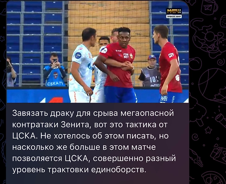 Во втором тайме модель игры обеих команд не слишком сильно поменялась: СБГ пытались атаковать позиционно, все также постоянно натыкаясь (пускай и реже) на опасные контратаки. Однако во второй половине встречи все обсуждали не футбол, а какие-то посторонние вещи.
