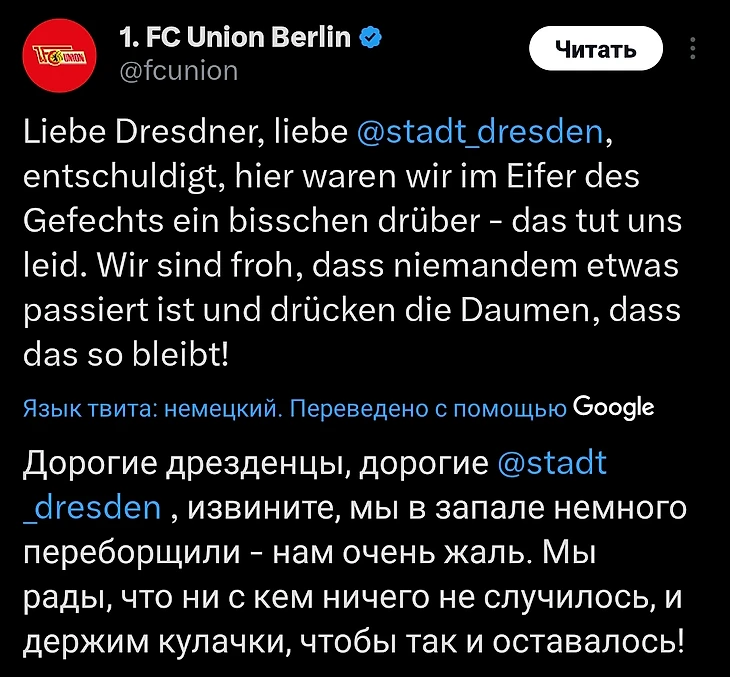 Скандал в Бундеслиге: «Унион» в своих соцсетях высмеял обрушение моста в Дрездене