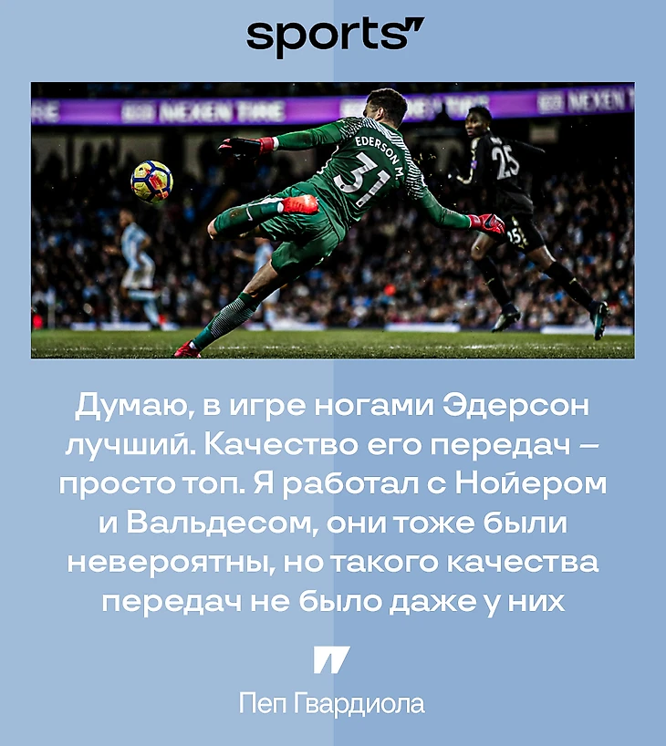 Сам Пеп считает, что лучше Эдерсона ногами не играет никто.