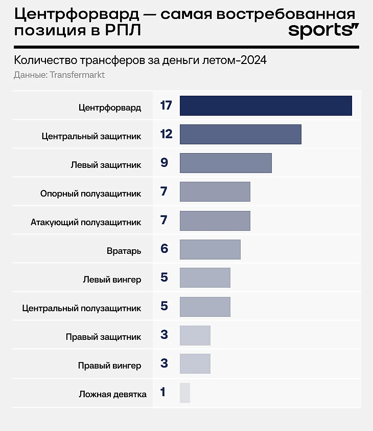 Отметим, что в топ-лигах больше искали центральных защитников (в РПЛ это второе по популярности амплуа).