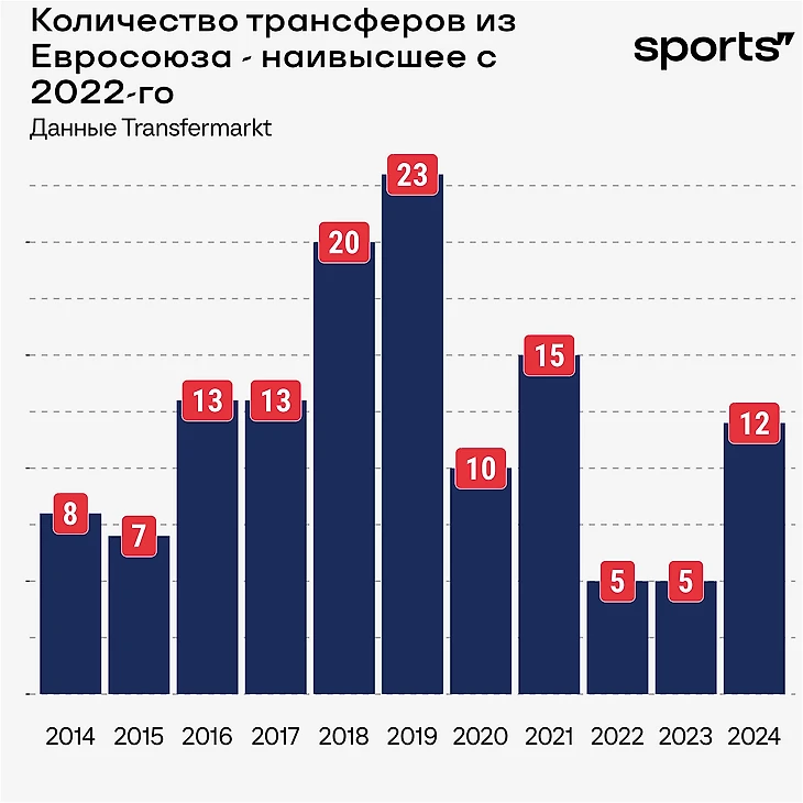 Киперы всегда считались самым российским амплуа в РПЛ, но сейчас есть исключения – в поисках современного вратаря, умеющего играть ногами, «Ростов» пошел за границу и привез 30-летнего австро-боснийца Хидаета Ханкича. После 2022-го переходы игроков с паспортом ЕС всегда привлекают особое внимание, а этим летом их было 9. Наивысший показатель с 2022-го. И это еще без учета того же Ханкича, у которого основное футбольное гражданство – Босния и Герцеговина (страна еще в стадии переговоров о вступлении в ЕС).