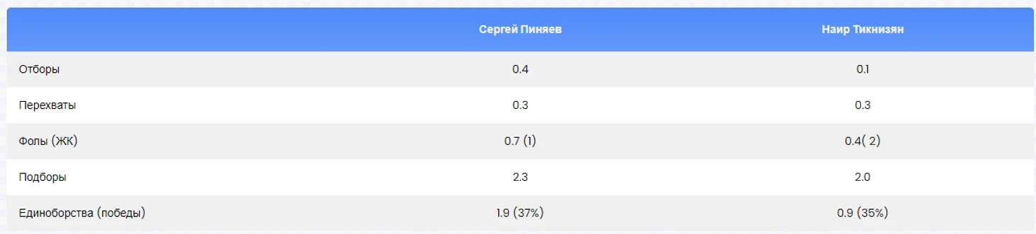 Но и по ключевым оборонительным показателям Пиняев лидирует. Он делает больше отборов, подборов и выигрывает больше единоборств. Однако у него также больше фолов.