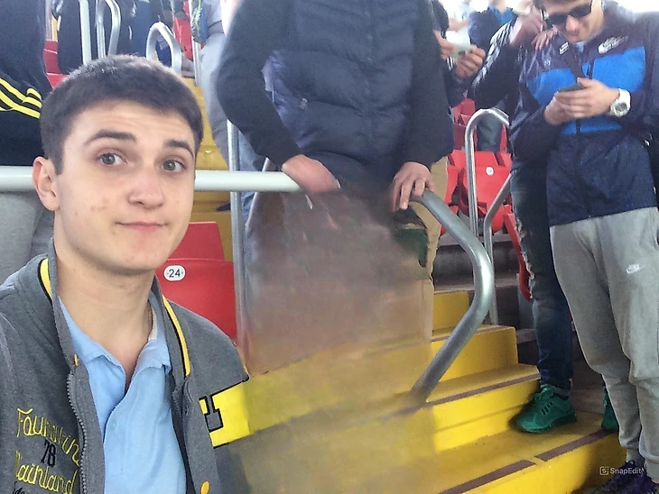 — «Зенит» приезжает в Москву играть со «Спартаком»? Давай сходим?», — предложил я подруге. — «Ну а чего, давай сходим», — почти сразу согласилась одногруппница Лиза. Мы договорились встретиться за полтора часа на станции «Спартак», чтобы вместе пойти к чаше новенького стадиона. Неизвестно, чем я думал в то утро, но я оделся в светлые штаны и голубое поло, и уже на станции метро ловил на себе недовольные взгляды проходящих мимо болельщиков. Подойдя ко входу на сектор и предъявив билеты, мы услышали от стюарда: «Я не пущу вас в таком виде на сектор, додумался, конечно, надеть голубое поло на спартаковский сектор». Но при покупке билетов на сайте меня никто не предупредил, что сектор — спартаковский и лучше одеваться согласно дресс-коду — никакого синего и никакого голубого.