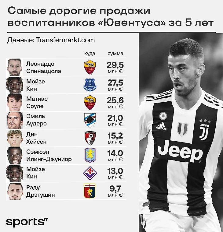 К тому же конвейер талантливой молодежи обеспечил серьезную экономию. По словам Керубини, расходы «Ювентуса» снизились на 24%. А зарплатная ведомость за несколько лет полегчала вдвое.