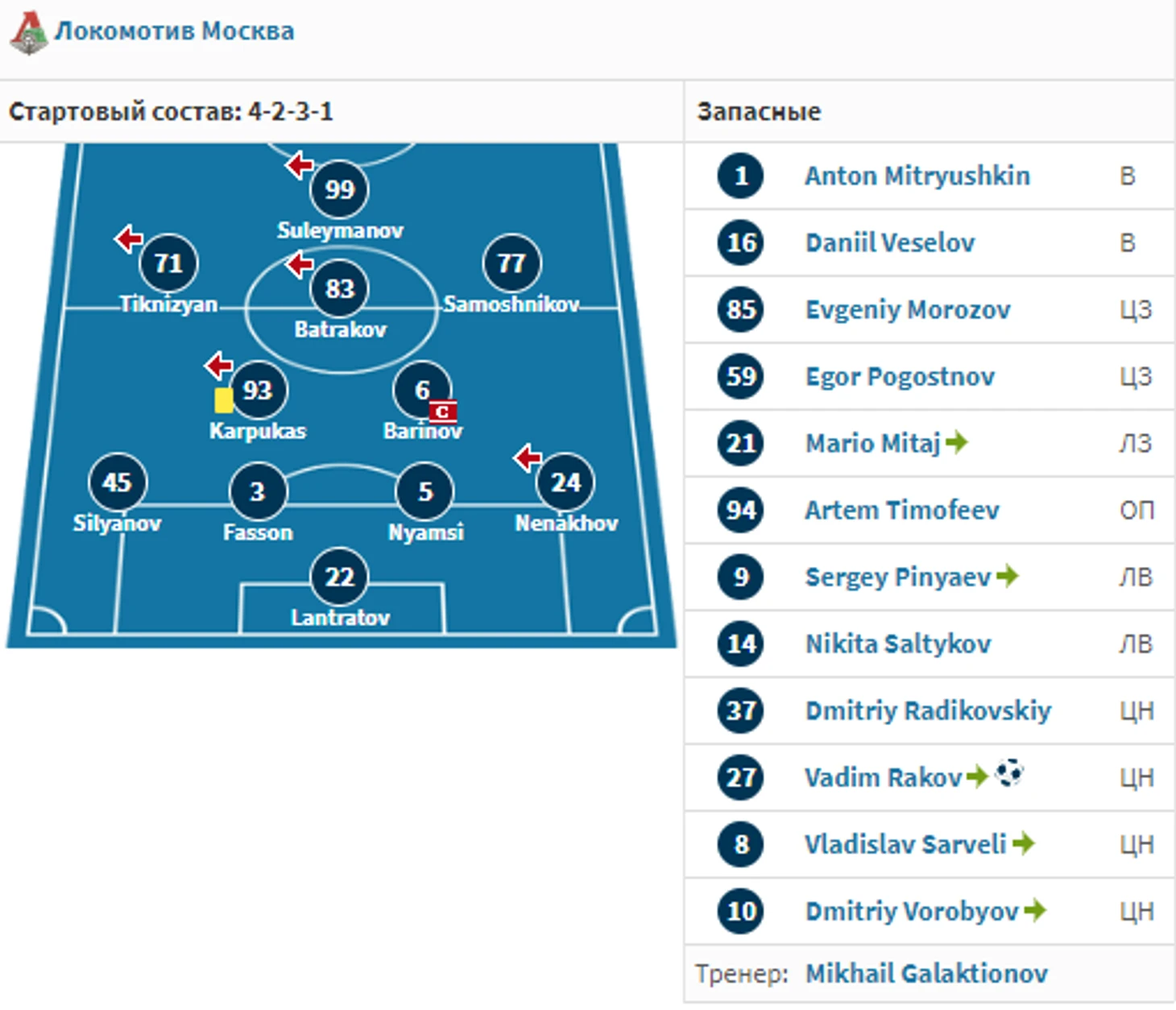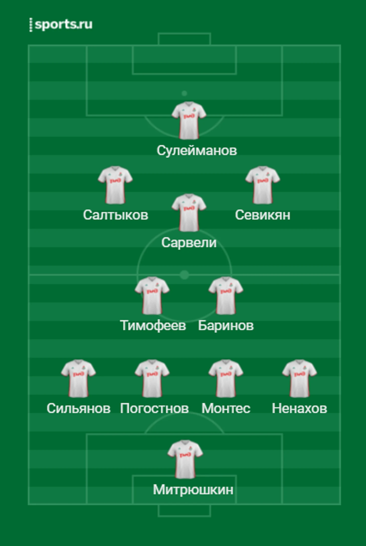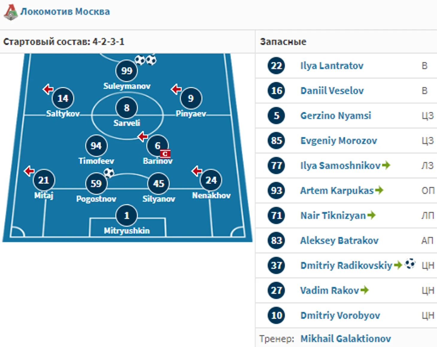 Это был третий матч «Локомотива» в текущем сезоне. Команда использовала схему 4-2-3-1 с составом, близким к основному.