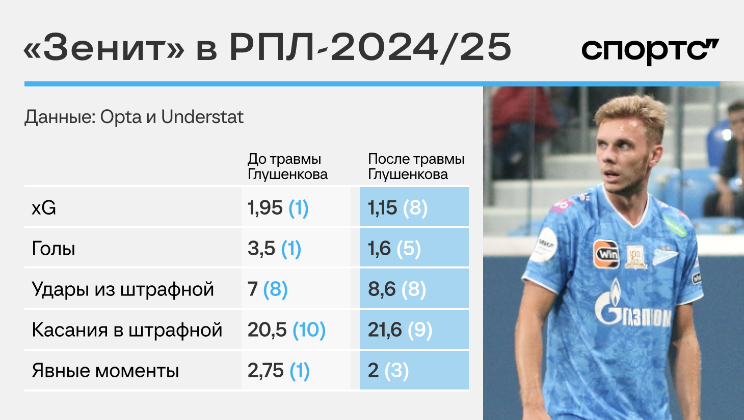 Глушенков маскировал проблемы «Зенита». Без него мимо четыре стартовых плана из пяти