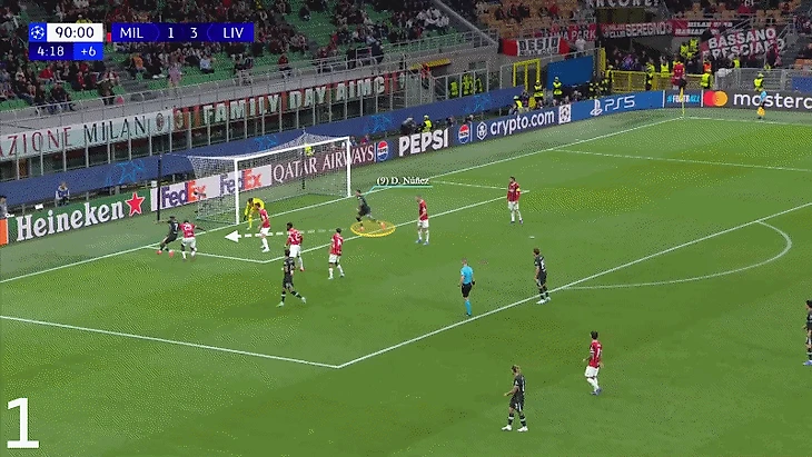 Самый свежий пример — он был близок к тому, чтобы попасть в ворота в последние минуты матча с «Миланом». Когда мяч оказался в штрафной, Нуньес среагировал быстрее и успел перехватить мяч у вратаря Лоренцо Торриани, но его удар пришелся под ближнюю штангу и был отбит.