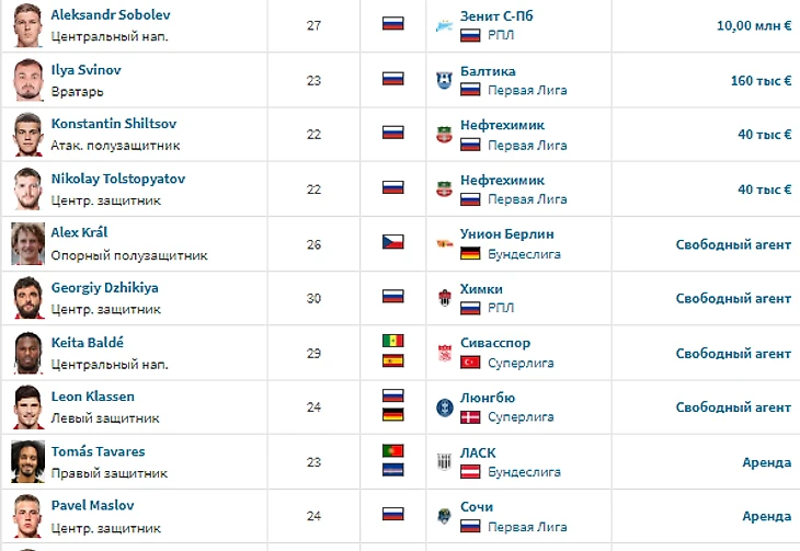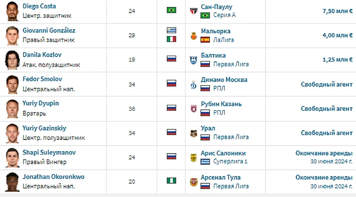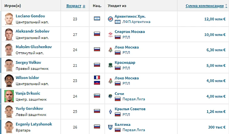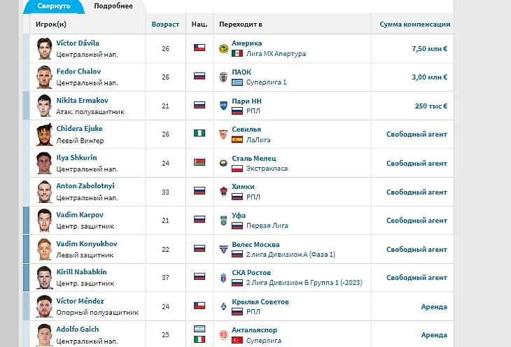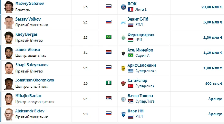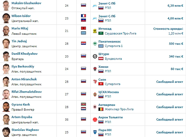 Итоги летнего трансферного окна для топ-6 клубов РПЛ