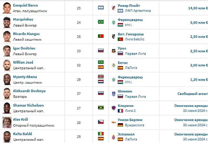 «Красно-белые» значительно обновили свой состав при новом тренере. Деян Станкович привел с собой Маркиньоса и Абену из «Ференцвароша», оба пока смотрятся достаточно неплохо. Но главное попадание «в яблочко» это покупка Эзекиеля Барко за 14 млн евро. Вопросы пока вызывает лишь приобретение Вилиана Жозе, который уже на протяжении 2 месяцев не может набрать нормальный игровой вес. С точки зрения продаж это ТО тоже очень удачное для москвичей, ведь команду покинул Александр Соболев за приличные 10 млн евро.