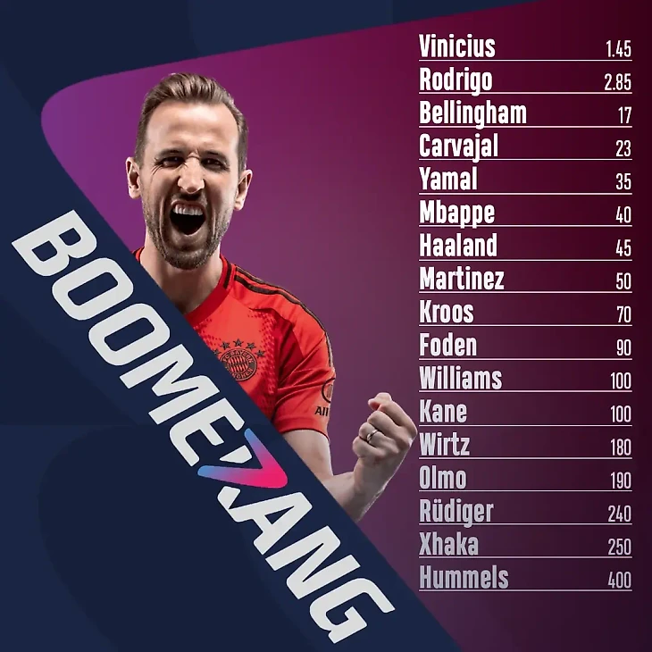 Полузащитники: Джуд Беллингем, Федерико Вальверде, Фил Фоден, Гранит Джака, Тони Кроос, Дани Ольмо, Флориан Виртц, Мартин Эдегор, Родри, Деклан Райс, Витинья, Коул Палмер, Хакан Чалханоглу.