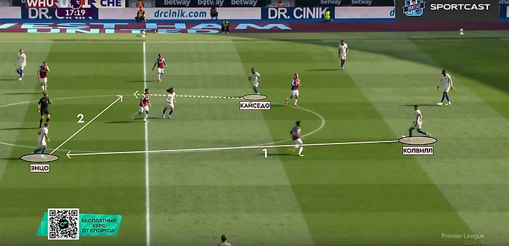 И уже когда «Челси» растаскал хозяев в центре, стоит отдать должное за филигранную перепасовку Колвиллу, Энцо и Кайседо. Очень красивый розыгрыш.