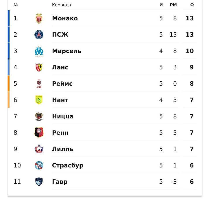 «Монако» Головина теперь лидирует: в шести матчах пять побед и ничья с «Лансом» (плюс обыграна «Барселона» в ЛЧ). Обошли сейчас «ПСЖ» Матвея Сафонова – благодаря тому, что парижане в субботу потеряли очки с «Реймсом» в дебютном матче Лиги 1 для вратаря.