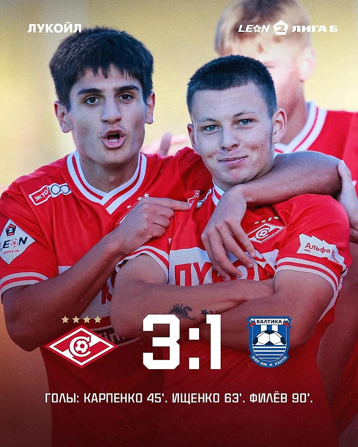 «Спартак-2» — «Балтика-БФУ» — 3:1 (1:0).