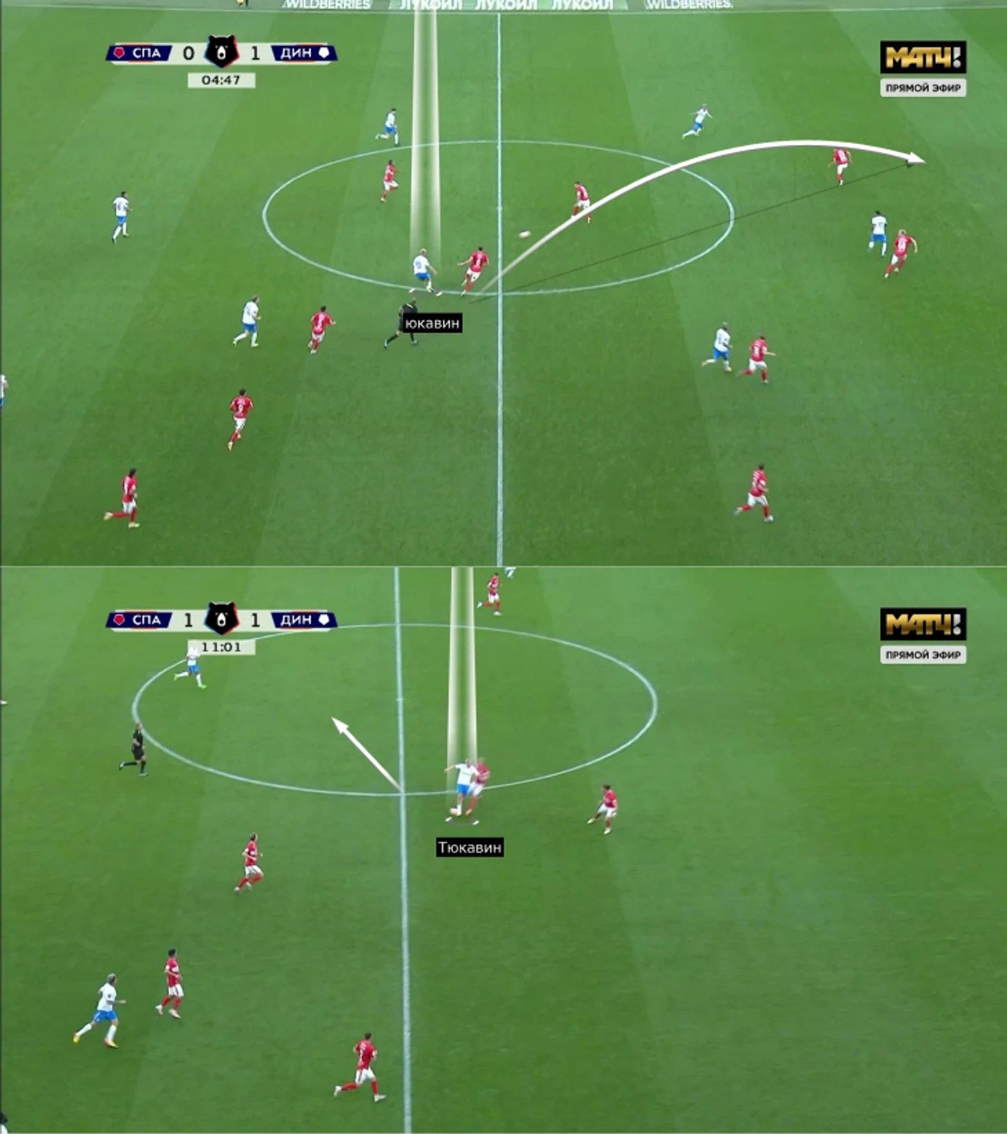 Выше мы уже разобрали влияние Тюкавина на сильный старт «Динамо»: гол и вовлеченность в главные контратаки «Динамо». Ключевые скиллы Константина: умные рывки от центральных защитников и идеальная игра в касание на приеме.