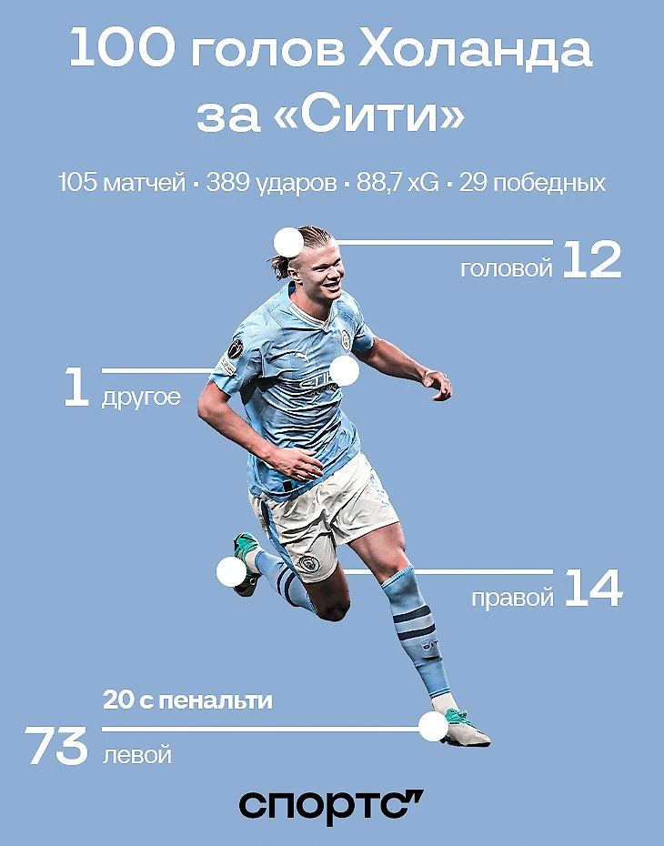 Эрлинг Холанд крушит соперников и генерирует обновления для статистических сервисов. В воскресенье пострадал «Арсенал» – именно Эрлинг открыл счет в главном матче тура. Гол в ворота Давида Райи стал не только десятым в пяти турах (как вам темп в два гола за игру?), но и сотым за «Сити» во всех турнирах.