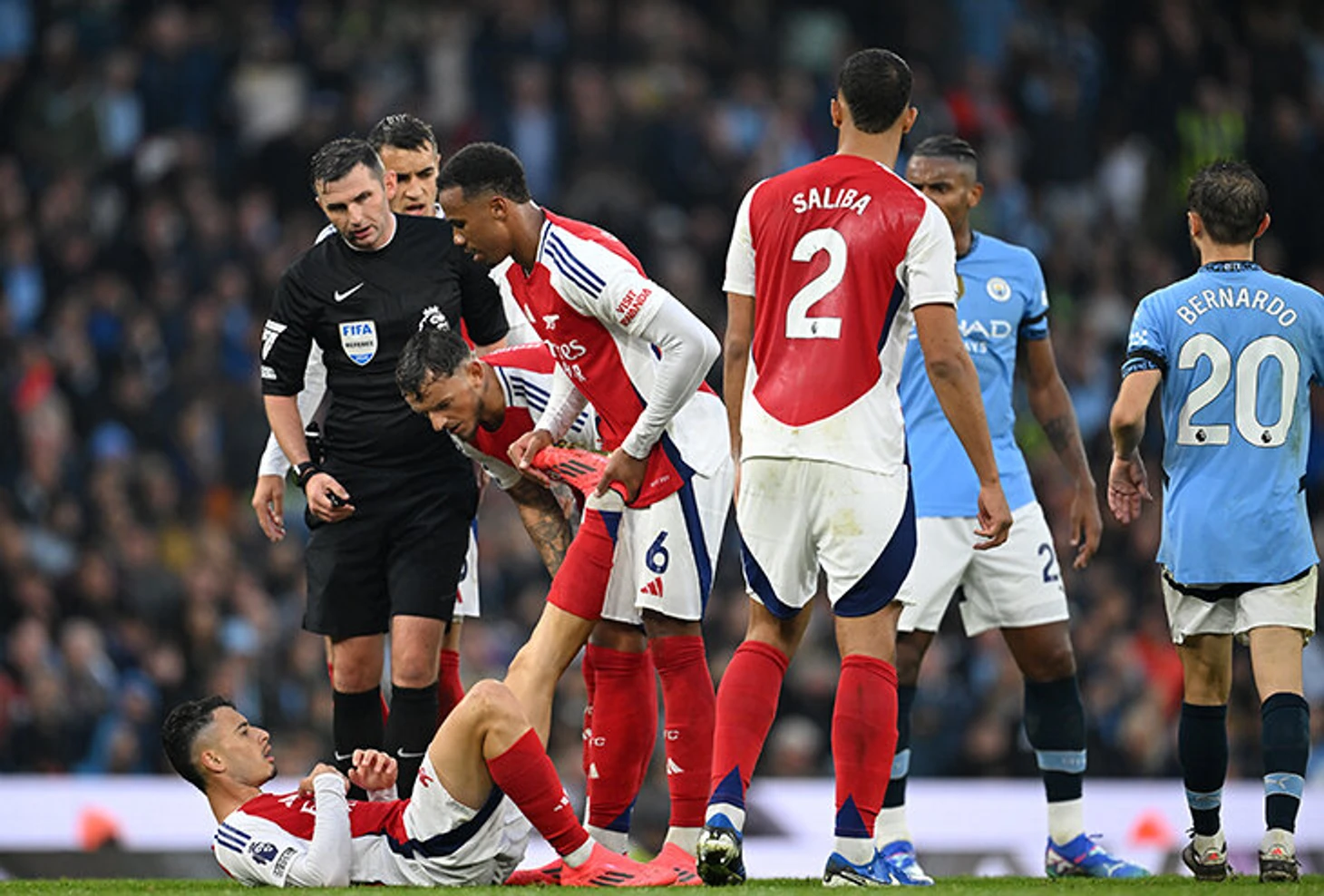 Холанд не сдерживал себя: швырнул мяч в Габриэла, поддел Артету, послал Жезуса